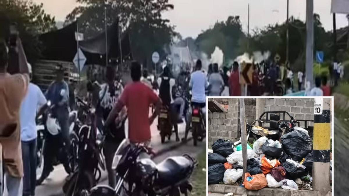 Adelante, basuras acumuladas en Caucasia. Atrás, un bloqueo en una de las vías. FOTO: imagen tomada de redes.