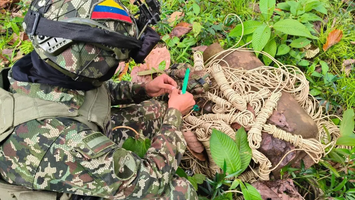 De acuerdo con las autoridades militares, soldados del Batallón de Infantería Liviana N.° 31 Rifles, adscrito a la Décima Primera Brigada, en coordinación con el Grupo Liviano de Caballería N.° 9, localizaron un material explosivo en la vereda Palomas, en inmediaciones de la Troncal de Occidente.