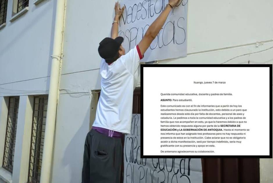 “Le pedimos a toda la comunidad educativa y a los padres de familia que nos acompañen en esto, ya que lo hacemos debido a que no hemos obtenido respuesta alguna por parte de la Secretaría de Educación ni de la Gobernación de Antioquia”, explicaron los alumnos.