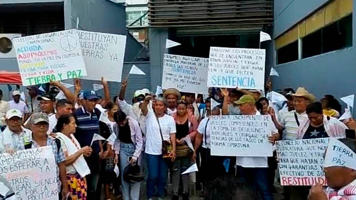 Una protesta masiva de reclamantes de tierras se realizó este viernes en el municipio de Apartadó, donde cerca de 200 personas exigen celeridad en la restitución de sus predios.