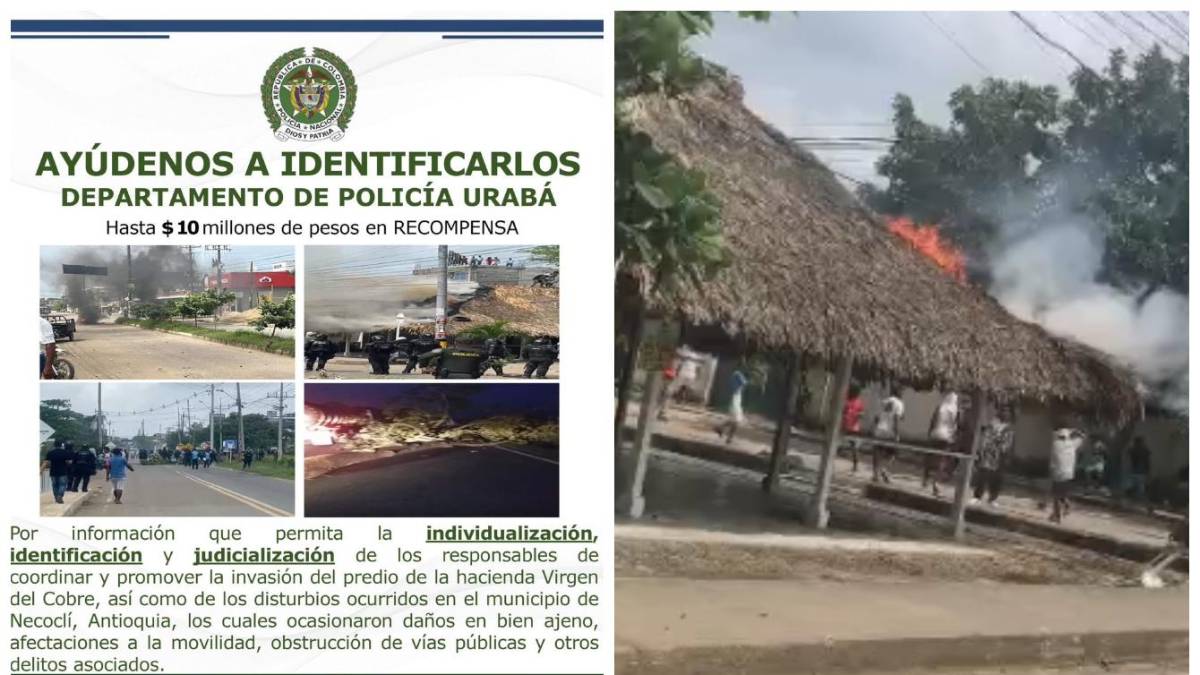 La primera es un plan de recompensas de hasta $10 millones por información que posibilite la ubicación, identificación y judicialización de los responsables de los desmanes en Necoclí, quienes, entre tantas alteraciones, además de invadir la Hacienda de la Virgen del Cobre, han ocasionado daño en bienes ajenos y afectación a la movilidad, obstruyendo con múltiples objetos vías principales.