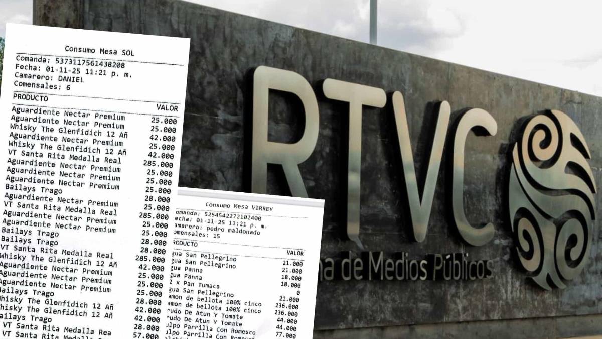 - Se revelaron dos facturas que suman más de $4.2 millones por consumo de whisky, aguardiente, vino, jamón de bellota y pulpo a la parrilla, registradas a nombre de RTVC y pagadas presuntamente como costos operativos de producción televisiva.
