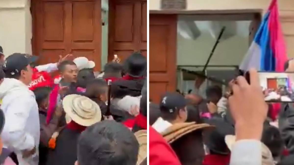 • Integrantes de la Minga intentaron entrar a la fuerza a la sede de la Cancillería en Bogotá. Foto: Captura de video/Redes Sociales