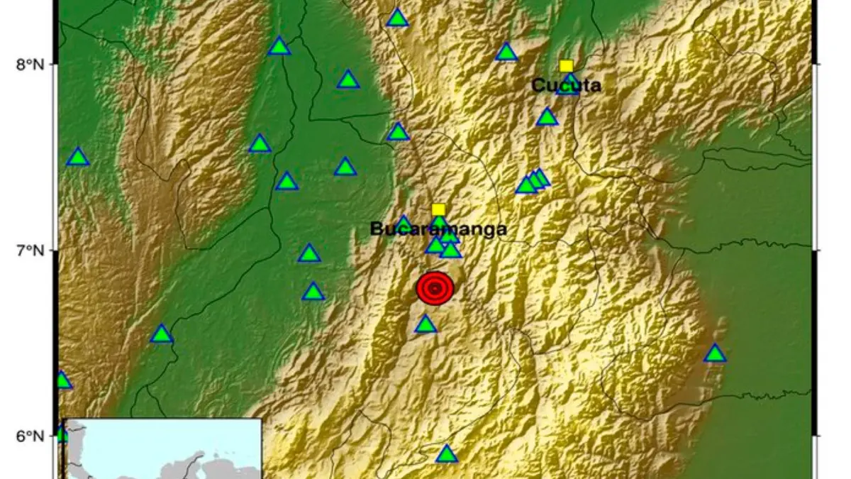 De acuerdo con el Servicio Geológico Colombiano, el sismo se presentó a las 2:05 de la mañana de este viernes y su epicentro fue el municipio de Los Santos, Santander, la región donde más tiembla en Colombia.