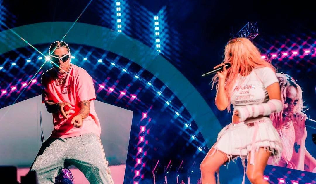 La Bichota invitó a su coterráneo al escenario y ambos cantaron el remix de Una noche en Medellín: “!Qué energía tan chimba, que hpta gentío! Gracias @karolg y todo el equipo por la invitación y por el trato, qué momento!”, detalló.
