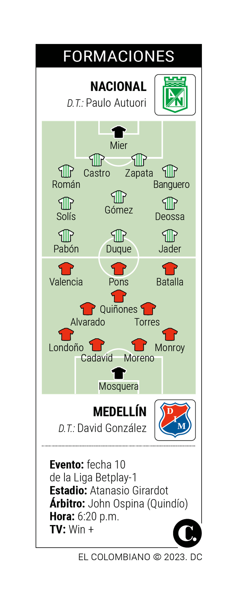 En ese mismo sentido el técnico David González, que ha intentado bajarle presión al partido diciendo que lo prepararon como cualquier otro duelo, dijo que Nacional es un equipo al que se le nota que viene haciendo un buen trabajo, pero que el DIM se preparó durante la semana para ganar y darle un buen espectáculo a sus aficionados.