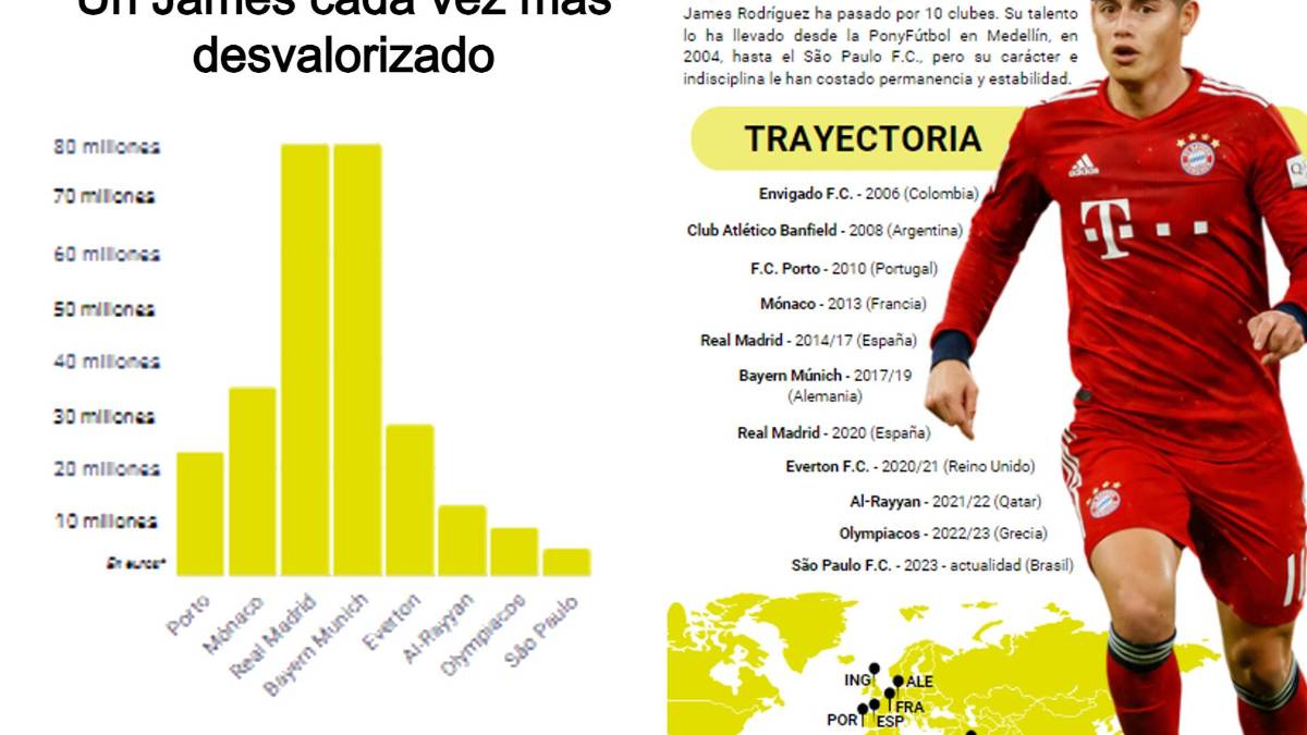 A pesar de haber trazado una gran carrera hasta ahora, James Rodríguez es tendencia y está en boca de todos tras conocer que muy seguramente no seguirá en el São Paulo de Brasil. La inconsistencia futbolística, debido a las lesiones e indisciplina, lo ha llevado a pasar por cuatro equipos diferentes en los últimos 4 años.