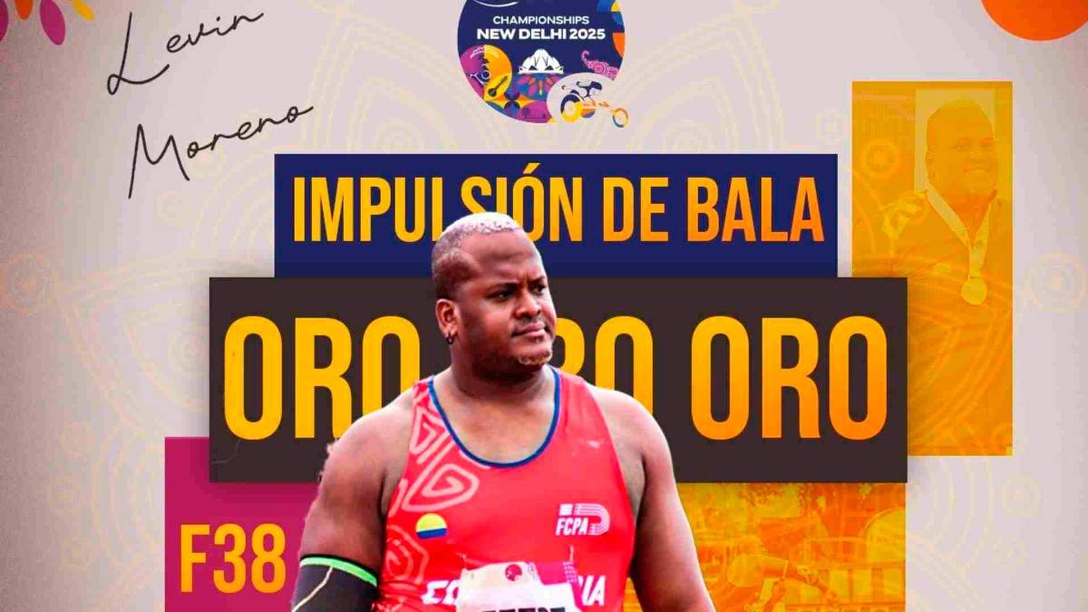 El antioqueño Levin Moreno Denis ganó la medalla de oro en la prueba de la impulsión de bala, clase deportiva F38, en el Mundial de Para Atletismo que se disputa en India, sexto metal dorado para la delegación nacional.