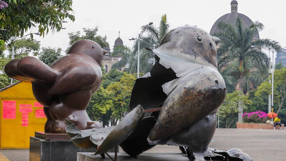 Cuando en la siguiente década se quiso recuperar los alrededores de la Iglesia de San Antonio, su mano de Midas fue otra vez invocada. La ciudad adquirió cuatro de sus esculturas en serie, las mismas que visitaban entonces París y Florencia, avaluadas en precios exorbitantes (porque precisamente visitaban París y Florencia). A pesar de las críticas por esta compra de la administración municipal, el beso del príncipe parecía haber despertado a esta zona residual de su pasado prosaico. Las figuras espléndidas cerraban los ojos a lo que estaba a su alrededor, con la indiferencia que les ha permitido emplazarse en cualquier lugar, incluso en éste, en ese momento uno de los más violentos del mundo. Sin embargo, las extremas circunstancias políticas de la época, ignoradas por gobernantes y artista, desbarataron despiadadamente el libreto de final feliz. Una bomba explotó al rutilante Pájaro y a 23 personas que hacían una fiesta a sus pies, en uno de los capítulos más funestos de nuestro conflicto urbano.