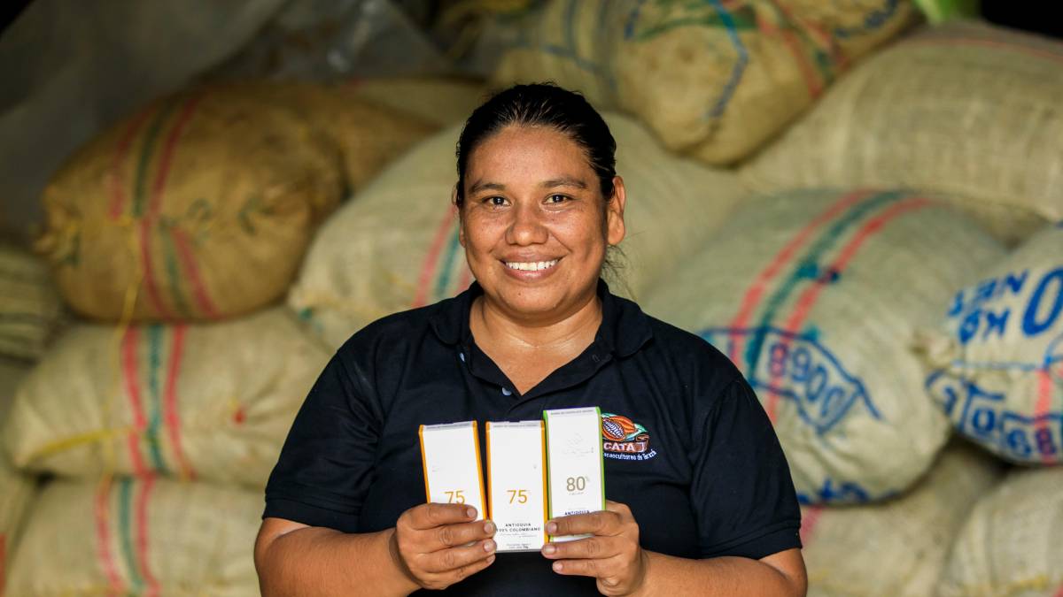 La historia de Acata es también la historia de Zurley. Se casó sin haberse graduado del bachillerato, pero el proyecto de cacao la motivó a retomar los estudios. Viajó cada fin de semana desde su vereda hasta Caucasia. Su compromiso la llevó a formarse como panelista sensorial durante más de seis meses y ese conocimiento le abrió la puerta para trabajar como técnica de calidad con USAID. Con un salario financió su carrera técnica. “Yo era muy penosa, no hablaba con casi nadie. Pero este proceso, al compartir con productores y técnicos, me ayudó a expresarme y a creerme capaz. Nunca imaginé liderar nada”, cuenta.
