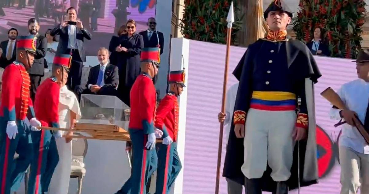 Según videos de ese momento, cuando la espada del héroe independentista latinoamericano Simón Bolívar era llevada en una urna de vidrio hasta la plaza que lleva su nombre, donde tenía lugar el acto de investidura del izquierdista Petro, el rey de España se mantuvo sentado, mientras otros dignatarios se levantaban y aplaudían.