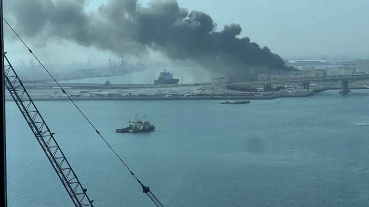Las imágenes captaron humo espeso cubriendo parte del puerto de Abu Dhabi, tras lo que se describe como un ataque con aviones no tripulados y/o misiles iraníes contra la instalación militar.