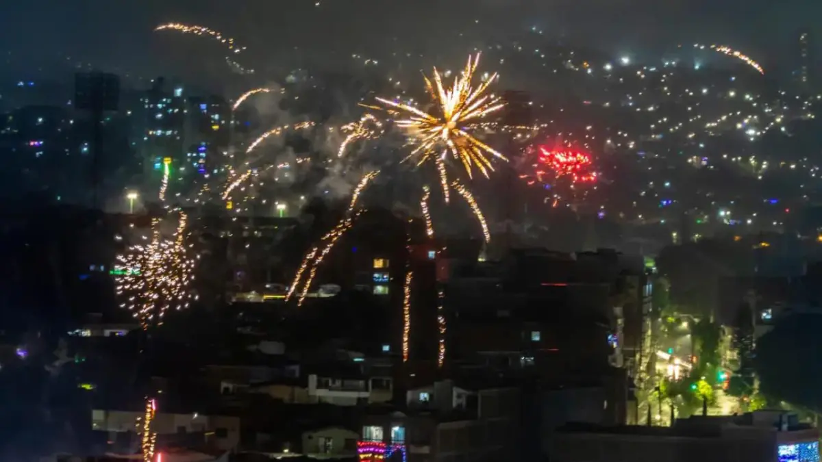 Desde las 12:00 a.m., la ciudad se ilumina con juegos pirotécnicos, generando todo tipo de contaminación y, en muchos casos, personas quemadas por el uso indebido de pólvora o fuegos artificiales. El año pasado se registraron 149 personas lesionadas en las fiestas de fin de año, siendo la capital antioqueña el lugar con más casos, con 56 heridos.