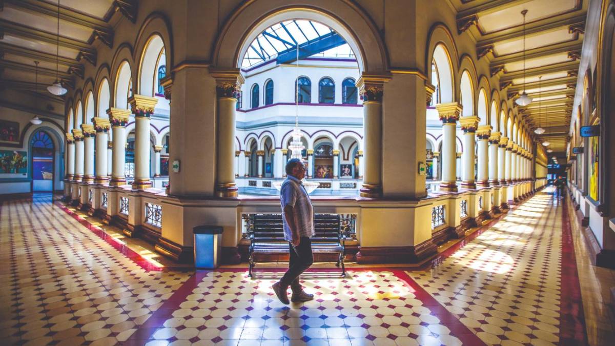 Los largos pasillos del histórico y tradicional Palacio Nacional en el centro de Medellín, que está próximo a cumplir un siglo. FOTO Julio César Herrera.