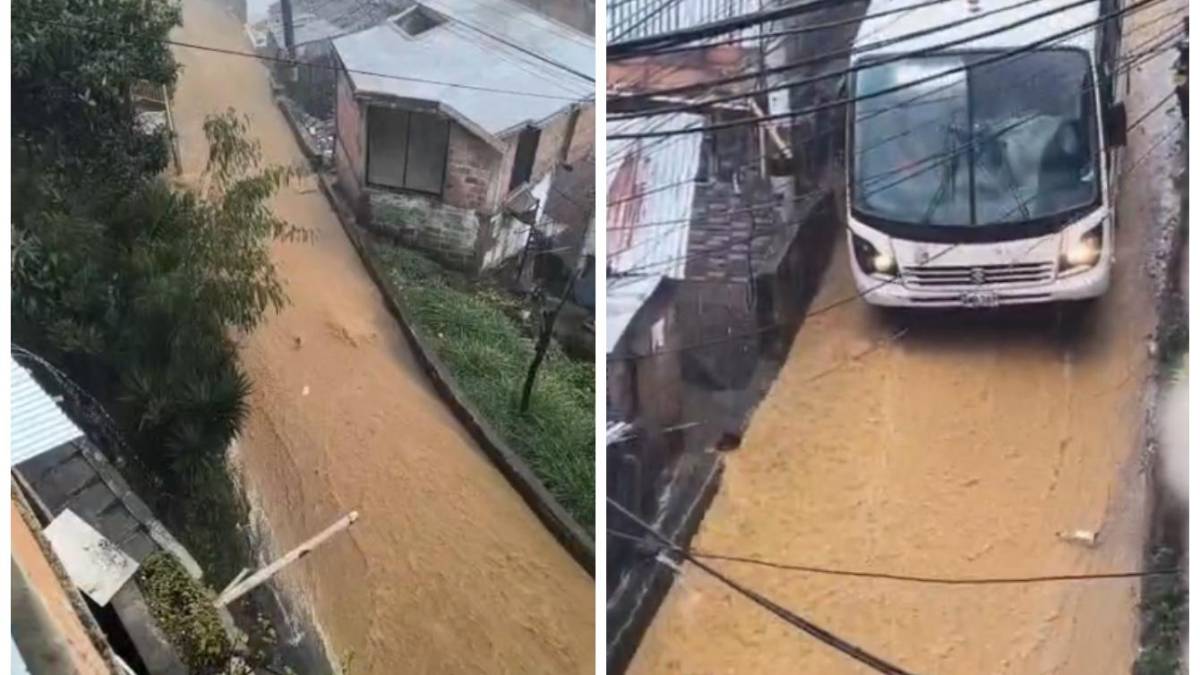 A través de un video ciudadano que fue grabado desde uno de los balcones de las casas, se puede observar lo rápido que corre el agua por el pavimento. Incluso, en otra toma, se aprecia cómo el conductor de un bus del sistema integrado del Metro, ante lo pendiente de la vía y las condiciones de la misma, desciende con el vehículo lo más despacio posible, todo para evitar un accidente.