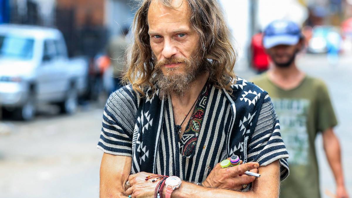 Tiene 43 años, el pelo lacio, rubio, y los dientes amarillos, pero completos. En los dedos, curtidos por la mugre, lleva dos anillos, uno con una cruz y otro que semeja un lapislázuli. Los ojos diáfanos, esquivos, miran al suelo, luego a la pipa, y chispean cuando se habla de bazuco.