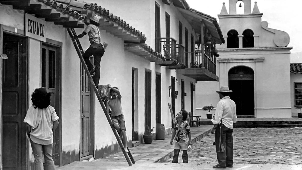 Trabajadores le aplican una mano de cal al Pueblito Paisa. Construido en los 70 en el cerro Nutibara, este lugar se inspiró en los pueblos tradicionales de Antioquia. FOTO JORGE ZULETA ZEA