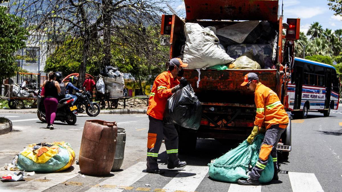 Operarios de Emvarias realizan una jornada de recolección de basuras en Medellín. Foto: Julio César Herrera Echeverri.