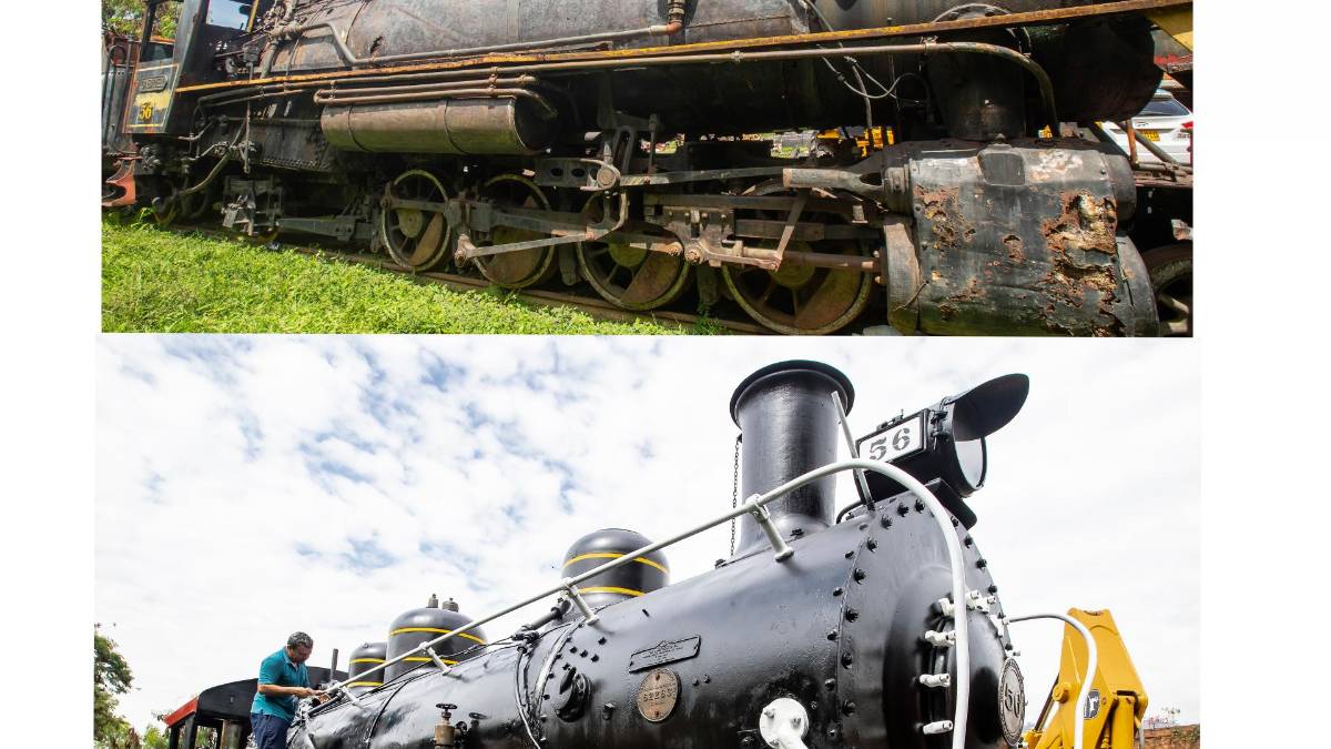 Exempleados del Ferrocarril de Antioquia y entusiastas de las locomotoras se aliaron para rescatar la emblemática máquina, que se pudre en Bello desde hace 17 años.