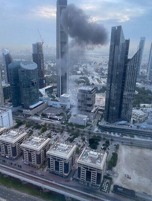 Corresponsales de AFP reportaron que una enorme columna de humo negro se elevó desde el centro financiero de la ciudad emiratí, mientras testigos aseguraron haber escuchado detonaciones durante la mañana.