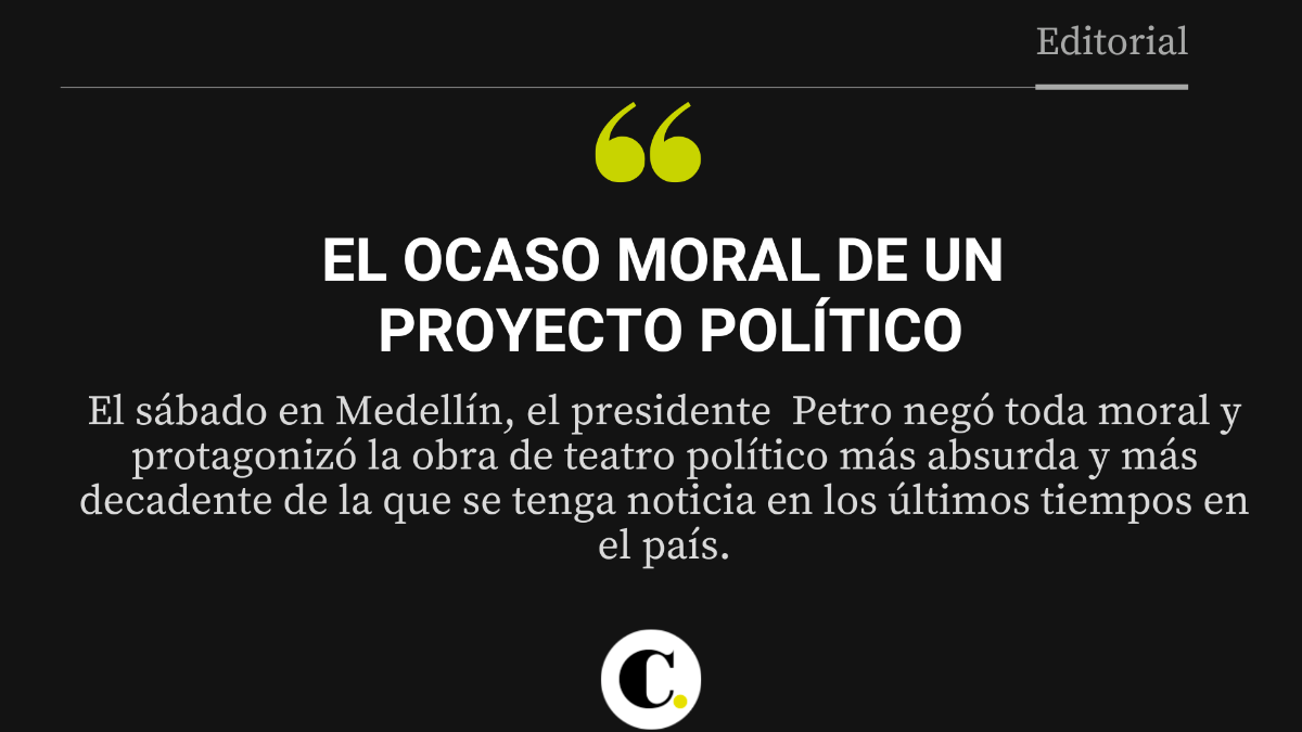 Al final de la obra Calígula, de Albert Camus, el protagonista dice: “He comprendido que el poder no tiene límites cuando el hombre niega toda moral”. Y eso parece haber ocurrido el sábado en Medellín. El presidente Gustavo Petro negó toda moral y protagonizó la obra de teatro político más absurda y más decadente de la que se tenga noticia en los últimos tiempos en el país.