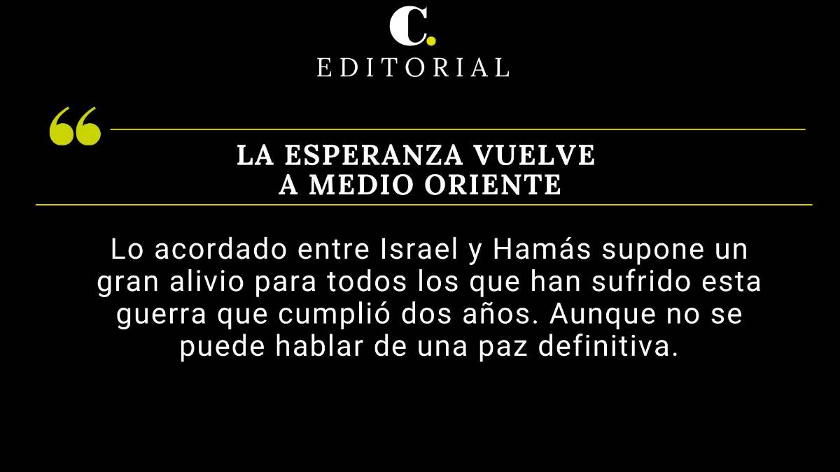 En todo caso, lo que han acordado Israel y Hamás supone un gran alivio para todos los que han sufrido esta dramática guerra que cumplió dos años. Si bien no se puede hablar de una paz definitiva porque esta requiere tiempo y muchas muestras de buena voluntad, la tregua que ha comenzado es la noticia que millones de personas en todo el mundo estábamos esperando. Los intereses y vanidades que hay de por medio se vuelven secundarios frente a la alegría de saber que, por ahora, se han logrado silenciar las armas..